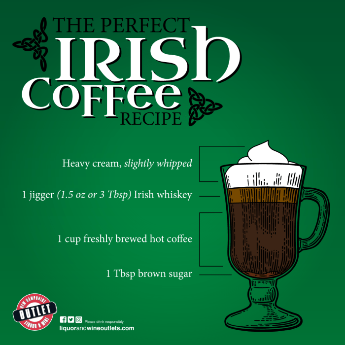 This graphic was designed to share a traditional coffee recipe that includes whiskey. It’s sharing was designed to elevate sales of the products.